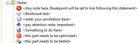 '[breakpoint] <Any note here. Breakpoint will be set to line following this statement>