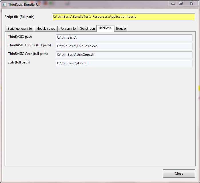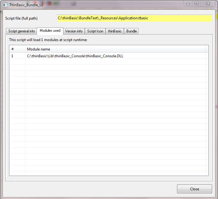 All ThinBASIC modules needed by the script will be listed into "Module" tab.