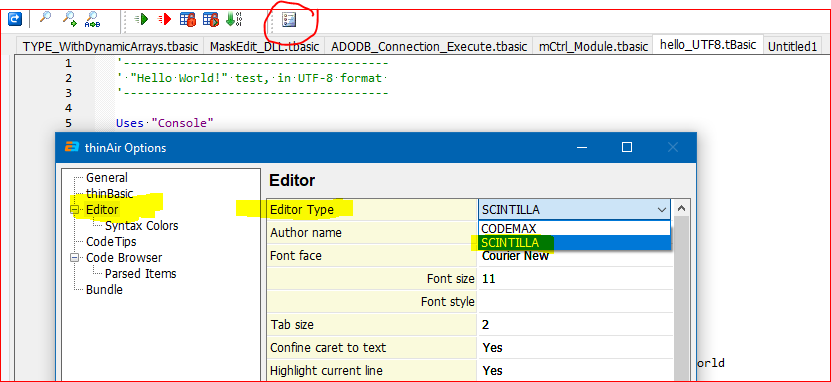 ATTENTION: development of Scintilla editor control just started. Scintilla editor control has a huge number of functionalities but only very few has been integrated into thinAir. A lot of work is still missing to have Scintilla fully integrated.